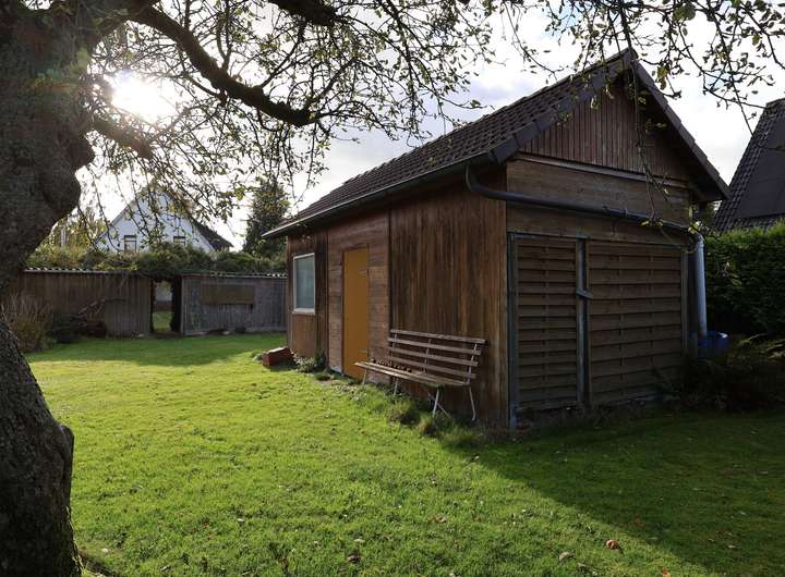 Auf dem Grundstück befindet sich zudem ein überdachter Unterstand, der zum einen für Gartengeräte genutzt werden kann und zum anderen bisher als Werkstatt fungierte. Weiterhin ist ein Holzschuppen vorhanden, der sich ideal als Abstellfläche für Anhänger oder Wohnwagen nutzen lässt.