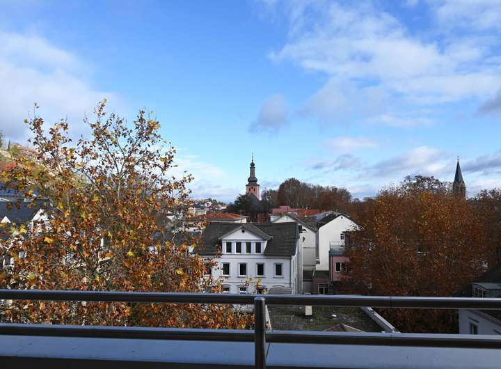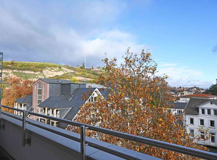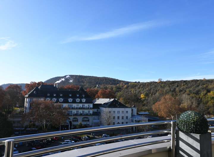 Ausgesuchte Materialen, Fußbodenheizung, Klimaanlage, elek. Rollläden sind Annehmlichkeiten, die Sie im Innern begeistern, die fast 40 m² große und teilweise überdachte Terrasse bildet das Highlight außen. Der Genuss des grandiosen Blicks zum Kurhaus, den Weinbergen und dem Teetempel wird Sie zu jeder Jahreszeit bezaubern. Aber auch den Blick zur Kauzenburg und der Pauluskirche, den Sie vorm Betreten Ihrer Wohnung erhaschen, erfreut das Auge.