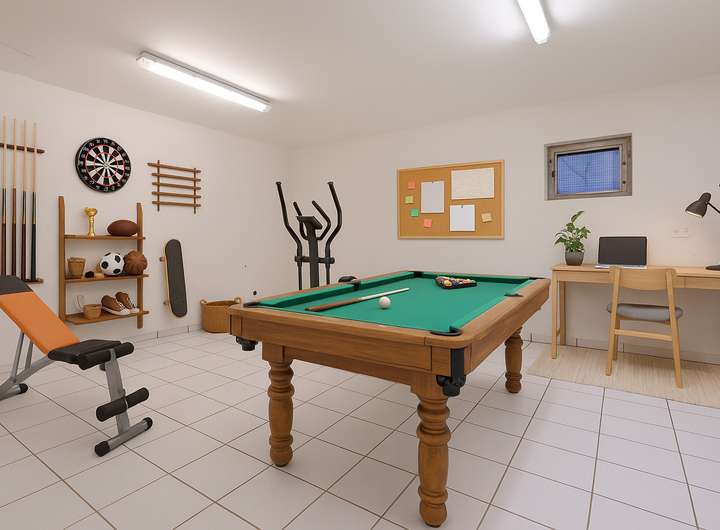 Die Ausstattung der Immobilie entspricht einer normalen Qualitätsstufe und bietet eine angenehme Wohnatmosphäre. Zwei gut ausgestattete Badezimmer bieten ausreichend Freiraum für die ganze Familie und garantieren einen stressfreien Start in den Tag.