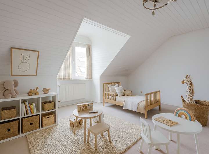 Die Immobilie verfügt über insgesamt fünf Zimmer, darunter vier geräumige Schlafzimmer, die vielseitige Nutzungsmöglichkeiten bieten. Die Raumaufteilung ist funktional gestaltet und ermöglicht eine ideale Nutzung der vorhandenen Flächen. Ein Highlight dieser Immobilie ist das lichtdurchflutete Wohnzimmer, das zu gemütlichen Stunden einlädt und als zentraler Treffpunkt für die Familie dient.