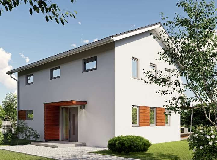 Moderne Architektur trifft zeitlose Eleganz und das auf zwei Ebenen. Dabei sorgen die großen Fenster für viel Licht in Ihrem neuen Traumhaus. Auf Ihrer zukünftigen Wohnebene im Erdgeschoss finden Sie alles, was Sie sich vorgestellt haben, ein schönes geräumiges Wohn-Ess-Zimmer mit einem herrlichen Blick in Ihren Garten und eine Küche, die zum gemeinsamen Kochen einlädt. Der Hauswirtschaftsraum und das Gäste WC runden das Raumangebot auf dieser Ebene ab. Das zweite Geschoss bietet Platz für die Kinder, die Eltern, zum Entspannen, zum Arbeiten oder auch für Ihr Hobby. Keine Dachschrägen bieten Ihnen außerdem viele unterschiedliche Gestaltungsmöglichkeiten beim Einrichten Ihres neuen Traumhauses. Dabei können auch die Grundrisse noch variabel an Ihre Wünsche und Bedürfnisse angepasst werden.