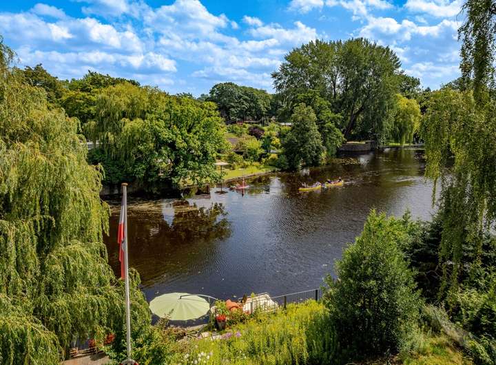 Rotklinkervilla mit Bootsanleger am Alsterlauf