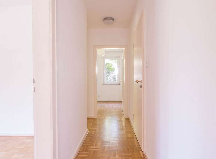 Von der Diele aus kommen Sie auch in den separaten Flur des Schlafbereichs. Zwei Zimmer, die ca. 18 m² groß sind und ein kleineres Arbeitszimmer von ca. 8 m² stellen zusammen mit dem Wannenbad und dem Duschbad den privaten Bereich des Hauses dar. Hier können Sie sich zurückziehen, Kraft tanken und sich vom Tag erholen. Es versteht sich von selbst, dass Sie hier entspannt bei offenem Fenster schlafen können und lediglich die Vögel Ihre Nachtruhe stören können.