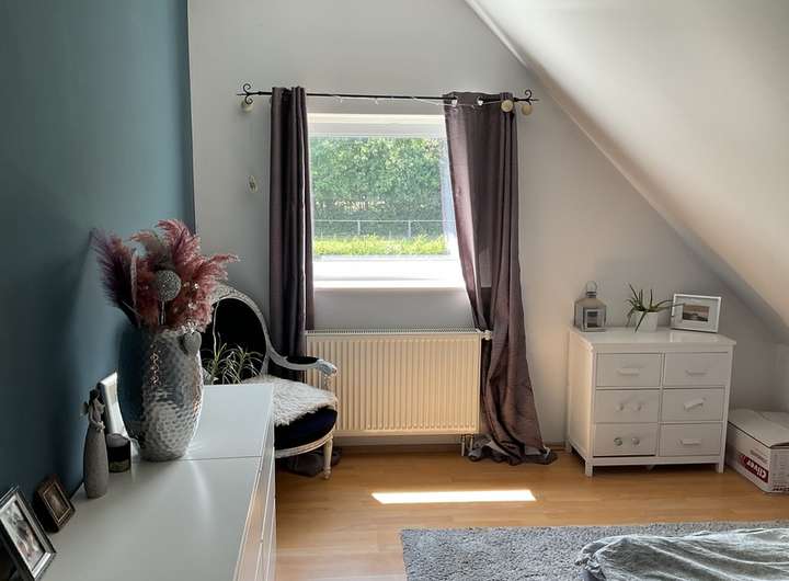 Im ausgebauten Dachgeschoss erwarten Sie drei gut geschnittene Zimmer, die vielseitig als Kinder-, Arbeits- oder Gästezimmer genutzt werden können. Das gesamte Haus wirkt durch die Farbgestaltung, die gepflegte Laminat- und Fliesenböden sowie praktische Rollläden an allen Fenstern besonders einladend.
