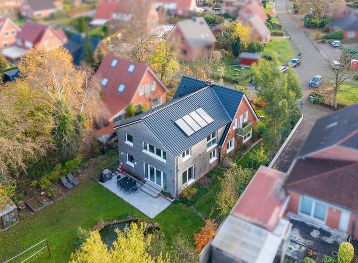 Dieses modernisierte Einfamilienhaus befindet sich in einer der begehrtesten Wohnlagen von Aurich und verbindet hochwertigen Wohnkomfort mit einer zeitgemäßen, energieeffizienten Ausstattung. Das im Jahr 1965 errichtete Gebäude wurde 2022 umfassend kernsaniert und zusätzlich durch einen komplett neu errichteten Anbau erweitert, der 2023 fertiggestellt wurde. So stehen heute rund 207 m² Wohnfläche zur Verfügung, die ein harmonisches Zusammenspiel aus klassischer Massivbauweise und moderner Architektur bieten – ideal für Paare, Familien oder ein Mehrgenerationenkonzept.