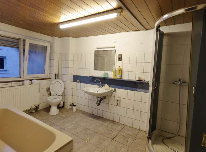 Das Objekt befindet sich insgesamt in einem renovierungsbedürftigen Zustand. Moderne Bodenbeläge sowie neue Wand- und Deckenflächen können vom Mieter nach Absprache selbst gestaltet werden. Auch das Badezimmer bietet Modernisierungspotenzial.