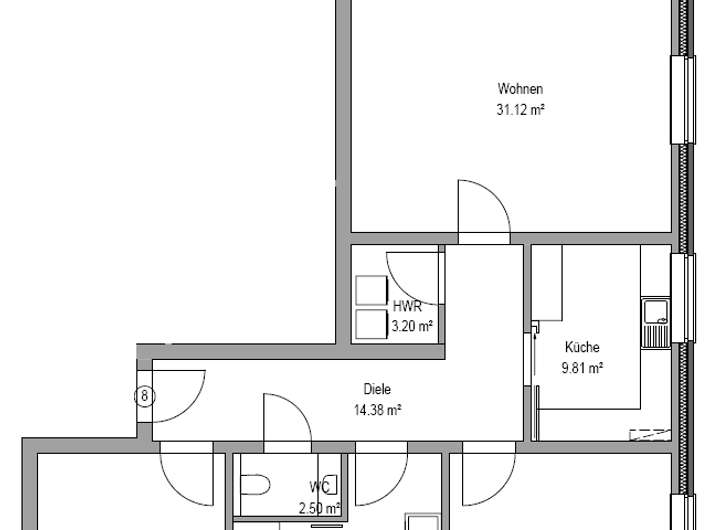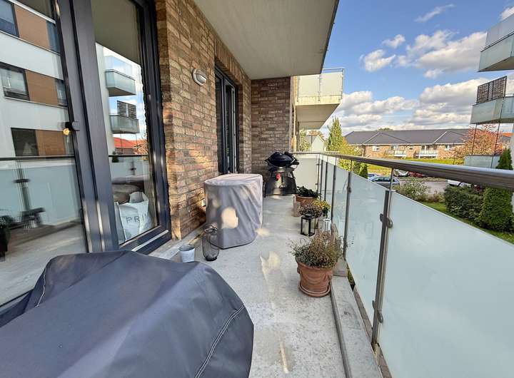 Die 3 Zimmerwohnung befindet sich im 1. Obergeschoss. Sie verfügt über ein ca. 31 qm² großes Wohnzimmer mit großem Balkon, 2 gut geschnittene Schlafzimmer, eine Wohnküche mit einer sehr gut ausgestatteter Einbauküche sowie ein geräumiges Tageslichtbad mit Badewanne und Dusche. Daneben stehen Ihnen ein Gäste-WC sowie ein praktischer Hauswirtschaftraum mit Anschlüssen für Waschmaschine und Trockner zur Verfügung.