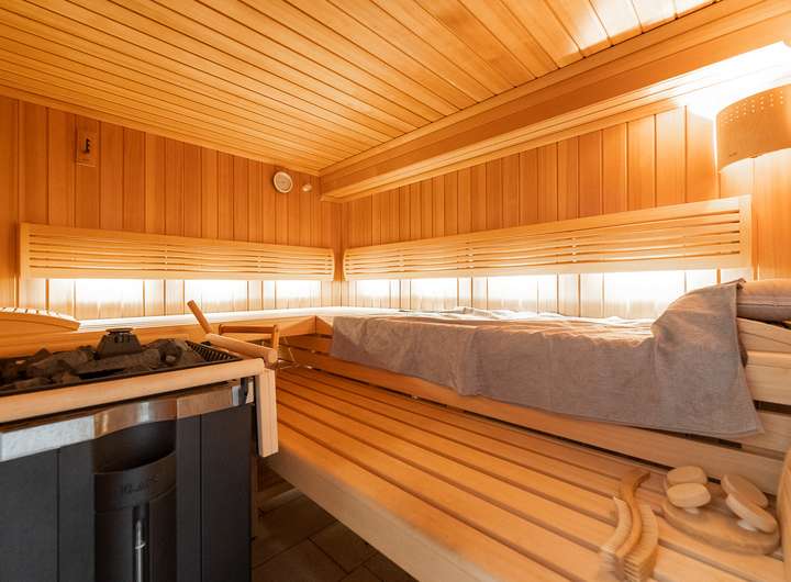 Der großzügige Garten wurde pflegeleicht gestaltet und verfügt über eine automatische Bewässerungsanlage, einen Salzwasserpool sowie eine Sauna – perfekte Voraussetzungen für entspannte Stunden.