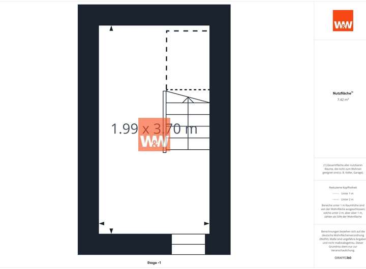 - minus Ecke ca. 1,7 m x 2,3 m = ca. - 3,91 m²