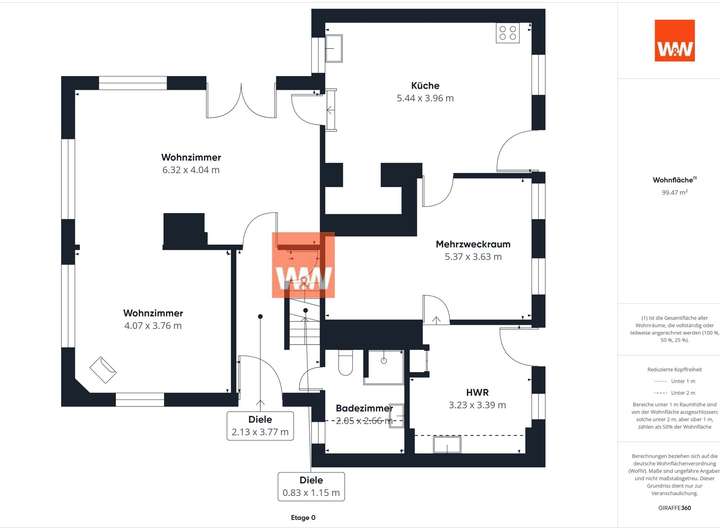 - Wohnzimmer ca. 6,32 m x 4,04 m = ca. 25,53 m²
