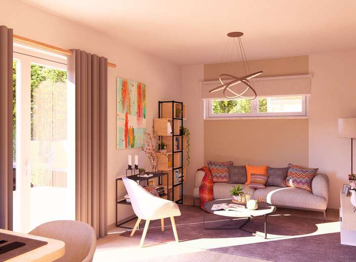 Mit einer Wohnfläche von fast 120 m² ist dieses Haus perfekt geeignet für Familien mit Kindern. Das Erdgeschoss besticht durch ein offenes, großzügiges Raumkonzept, das durch den Zugang zu Terrasse und Garten ein Gefühl von Freiheit ins Haus holt. Der Wohn- und Essbereich mit offener Küche, ein Gäste-WC, der Hauswirtschaftsraum und ein geräumiger Flur mit Treppenaufgang finden hier Platz. Im Dachgeschoss befinden sich drei Schlafzimmer sowie ein geräumiges Badezimmer.