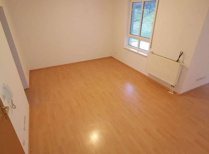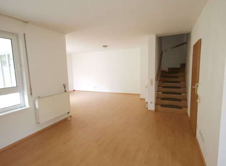 helles lichtdurchflutetes, mit Buche-Laminat versehenes WOHNZIMMER mit guter räumlicher Aufteilung und viel Gestaltungsfreiraum für verschiedenste behagliche Einrichtungsideen;