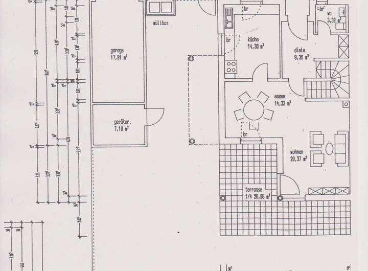 Direkt in der südöstlichen Wohnzimmerecke gelangen Sie auf die großzügige überdachte SÜDTERRASSE und den GARTEN, der komplett an allen 3 Hausseiten anliegt.