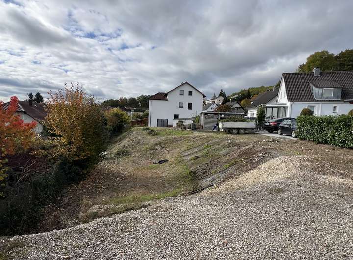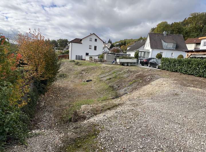 Die Erschließung erfolgt oben von der Straße, Strom, Wasser und Kanal liegen ca. 15 Meter vom Grundstück entfernt,