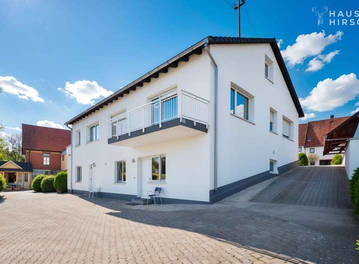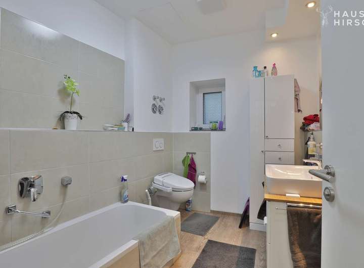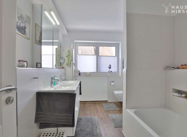 Die hochwertige Ausstattung dieses sanierten Hauses überzeugt auf ganzer Linie. Die Böden sind mit einer eleganten Kombination aus Fliesen, Laminat und Parkett gestaltet. Zur Immobilie gehören eine Doppel-Garage und Außenstellplätze, die für ausreichend Parkmöglichkeiten sorgen. Ein praktischer Kellerraum und Abstellraum und ein Gäste-WC ergänzen den Komfort.