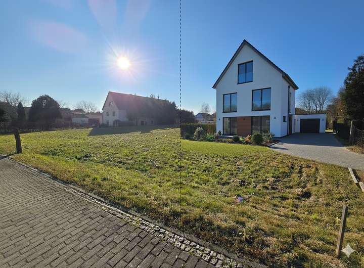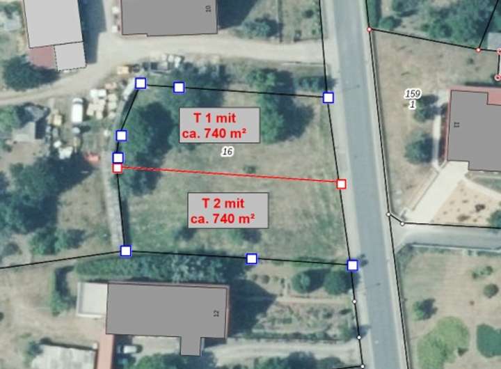 Das schöne Grundstück in 01561 Liega wurde kürzlich in zwei eigenständige Parzellen geteilt. Während die linke Fläche bereits einen neuen Eigentümer gefunden hat, steht die rechte Bauparzelle (T1) mit ca. 740 m² nun zum Verkauf.