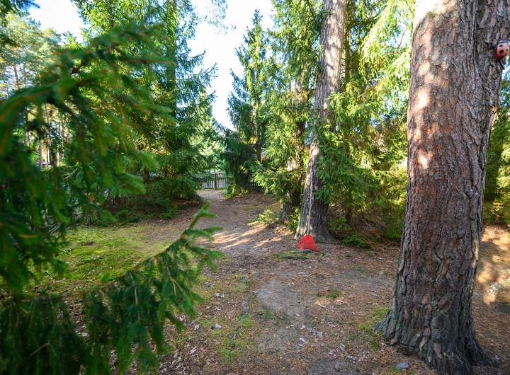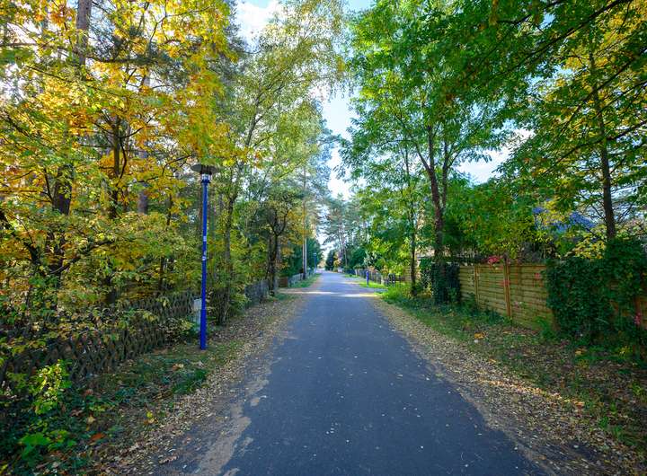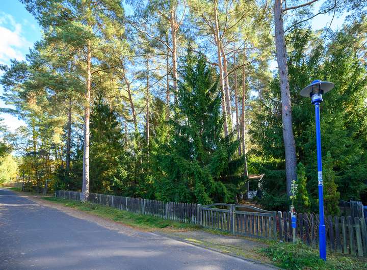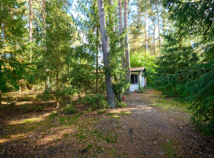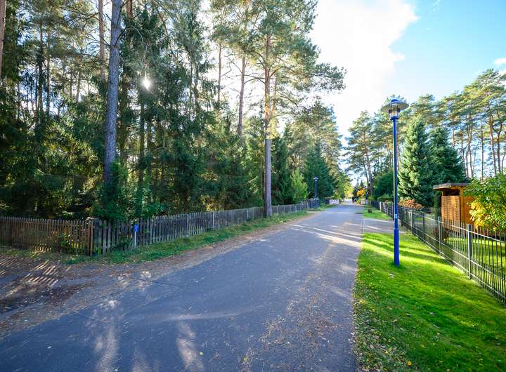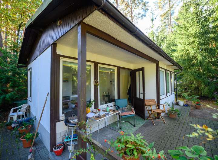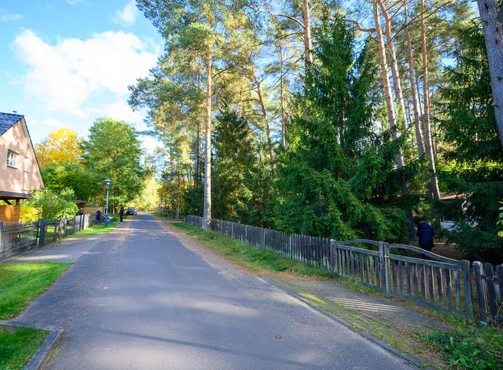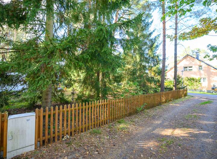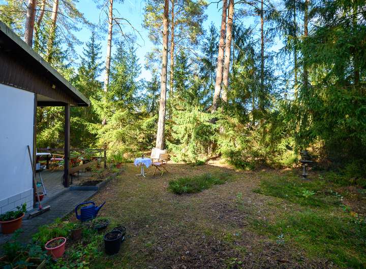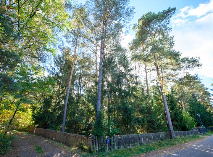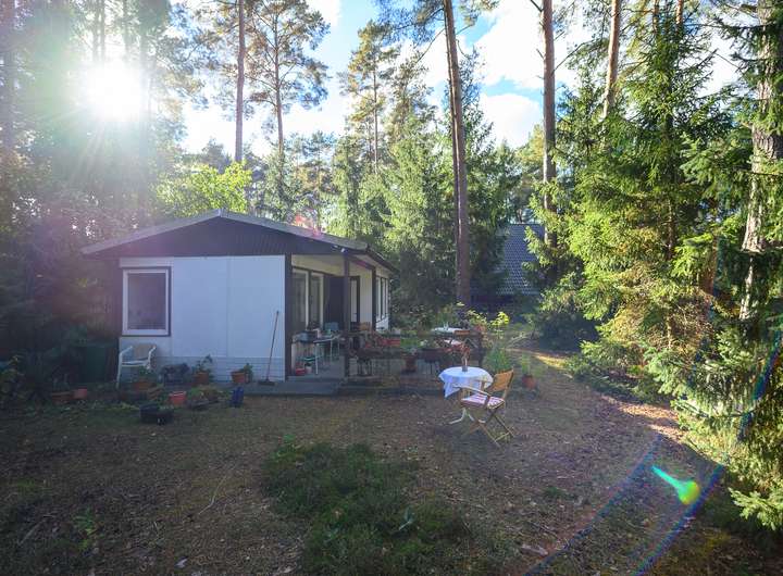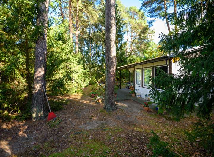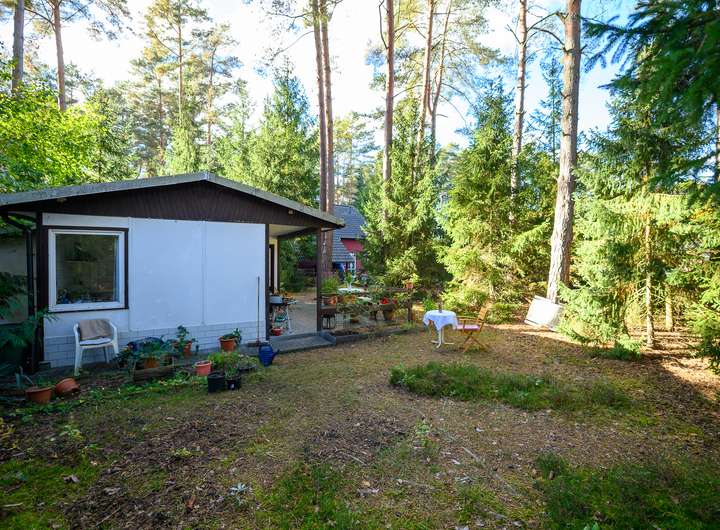 Das Grundstück ist im Moment bebaut mit einem Wochenendbungalow aus DDR-Zeiten, dieser ist jedoch nur noch sehr begrenzt nutzbar, von Abriss ist auszugehen. Außerdem ist das Grundstück stark mit Bäumen bewachsen. Der Verkäufer wird vertraglich darauf Wert legen, dass sich der Käufer dazu verpflichten wird, nur die zum Zwecke der Errichtung eines neuen Wohnhauses notwendigen Bäume fällen zu lassen, da er den waldartigen Charakter der Siedlung gern erhalten möchte.
