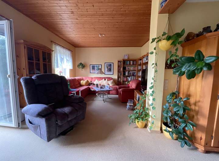Eine große Wohnung mit 3 Zimmern, Küche, Flur, HWR und Bad. Vom Wohnbereich gelangen Sie über die vorgelagerte Terrasse in den schön und pflegeleicht angelegten Garten.