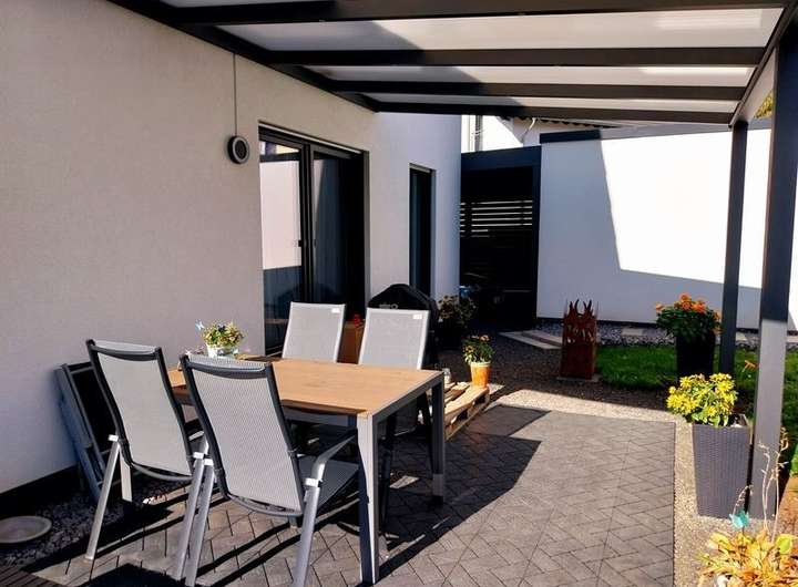 2022 wurden im Außenbereich die Terrasse und der Bereich vor der Garage überdacht.