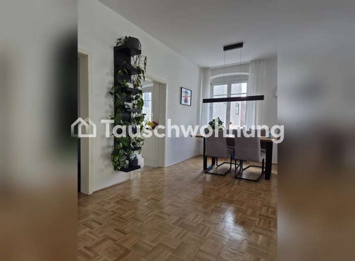 Wir bieten unsere charmante und helle 2-Zimmer-Altbauwohnung in der Altstadt zum Tausch an. Die Wohnung liegt im zweiten Stock (ohne Aufzug) und hat etwa 70 m². Sie ist aufgeteilt in eine Küche, ein Wohn- und Esszimmer, ein Schlafzimmer, ein Bad sowie einen Flur. Besonders praktisch: Man kann von jedem Zimmer in jedes andere gelangen, was die Wohnung besonders ideal für Paare macht.
