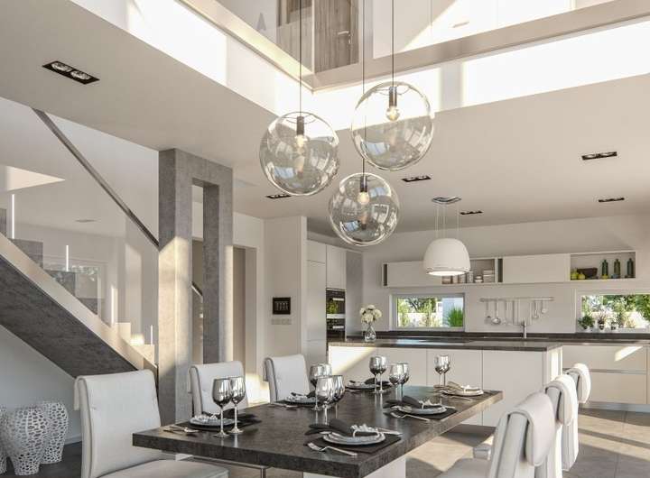 Besonders beeindruckend ist die zentral gelegene Interpretation der Bereiche Kochen und Essen, Ihre Gäste und ihre Familie werden diesen zentralen Lebensbereich geradezu lieben und genießen.