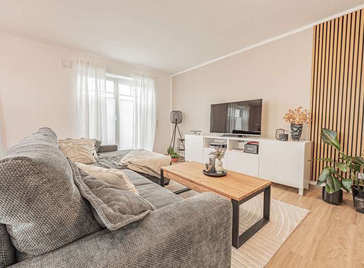 Das Objekt selbst bietet rund 264 m² Wohnfläche, verteilt auf vier moderne Zwei- bis Drei-Zimmer-Einheiten, alle mit Fußbodenheizung, getrennten Verbrauchszählern und eigenem Außenstellplatz. Die zentrale Wärmepumpe hält die Betriebskosten niedrig – ein schlagkräftiges Argument für zahlungskräftige Mieter in Zeiten steigender Energiekosten. Trotz Vollvermietung bewegt sich die aktuelle Durchschnittsmiete noch unter dem Kreisniveau und eröffnet eine sichtbare Mietreserve, die mit Index- oder Staffelmieten sowie der infrastrukturellen Aufwertung realisiert werden kann.