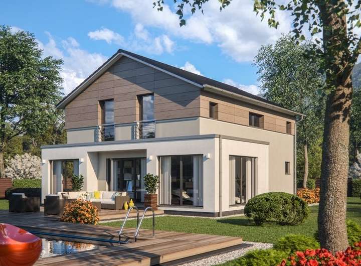 Das Äußere des Einfamilienhauses Life 148 überzeugt durch seine zweigeteilte, elegante Fassadengestaltung.