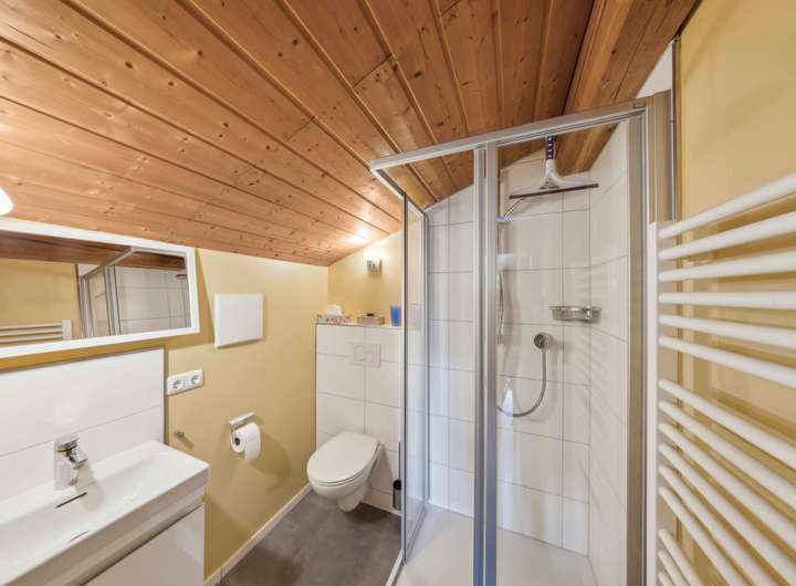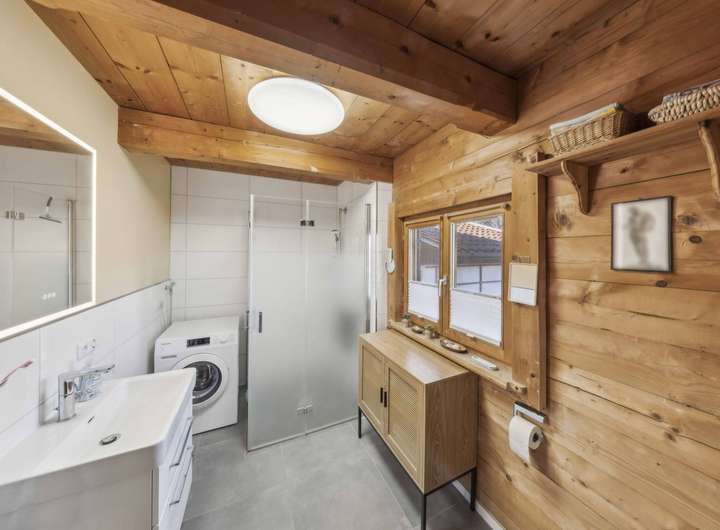 Das Haus verfügt über drei Bäder, von denen zwei bereits modernisiert wurden. Besonders komfortabel ist die ebenerdige Dusche im Erdgeschoss, die auch ein barrierefreies Wohnen ermöglicht.