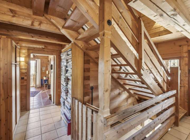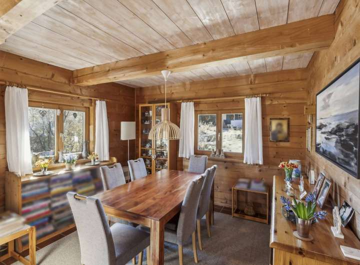Dieses außergewöhnliche Holzhaus in Blockbauweise mit gemauertem Sockel wurde 1984 errichtet und in den letzten Jahren umfassend modernisiert. Es besticht durch seine hochwertige Bauweise und zahlreiche kunstvolle Holzschnitzereien, die dem Haus eine besondere, handwerklich geprägte Note verleihen.
