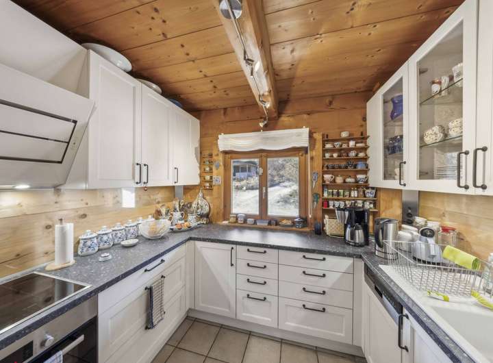 Die hochwertige Einbauküche im Landhausstil im Erdgeschoss – mit einem Wert von ca. 25.000 € – wurde erst kürzlich eingebaut. Auch im Untergeschoss steht eine separate Küche zur Verfügung, die zusätzlichen Komfort bietet. Für wohlige Wärme sorgt eine moderne Fußbodenheizung.