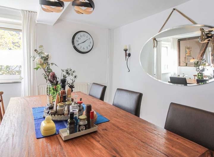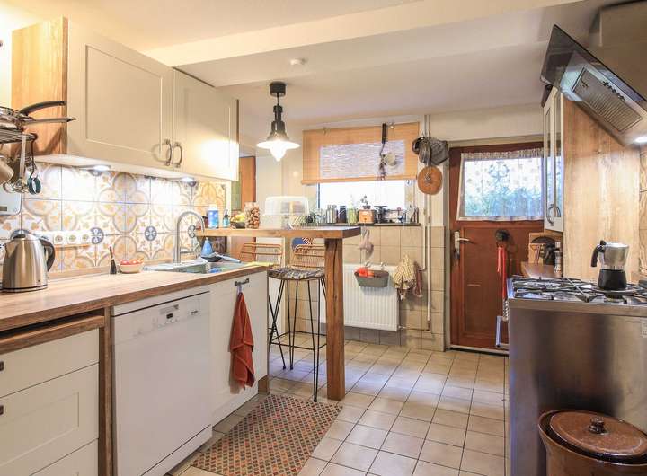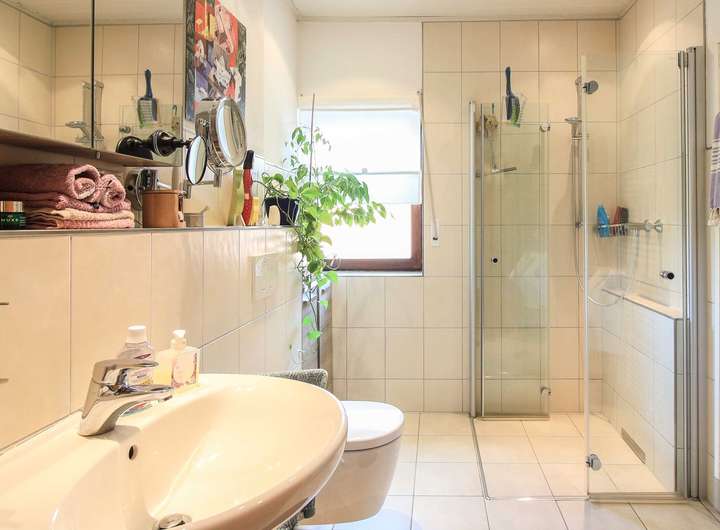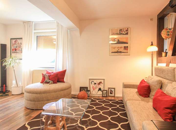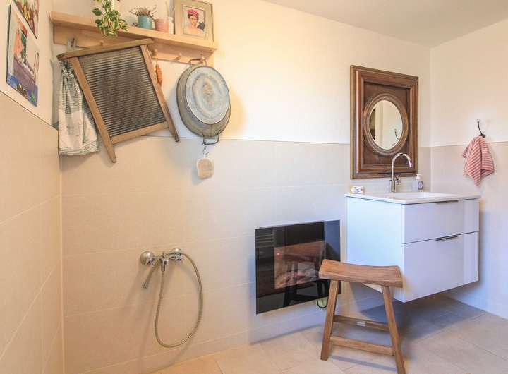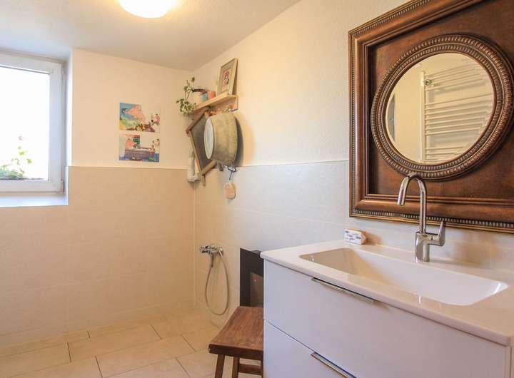 Im Erdgeschoss empfängt Sie ein großzügiger Wohn- und Essbereich, der sofort ein Gefühl von Ankommen und Geborgenheit vermittelt. Hier ist Raum für lange Familienabende, Geburtstagsfeiern und gemütliche Stunden am Abend. Direkt angrenzend befindet sich die urige Küche, die mit ihrem besonderen Charakter zum Mittelpunkt des Hauses wird – ideal für gesellige Weinabende und gemeinsames Kochen. Das Highlight für Hobbyköche ist der Gasherd, der echtes Kochvergnügen garantiert. Hinter dem Haus lädt eine kleine, geschützte Terrasse zum ungestörten Verweilen ein – Ihr persönlicher Rückzugsort für den ersten Kaffee am Morgen oder das Glas Wein bei Sonnenuntergang.