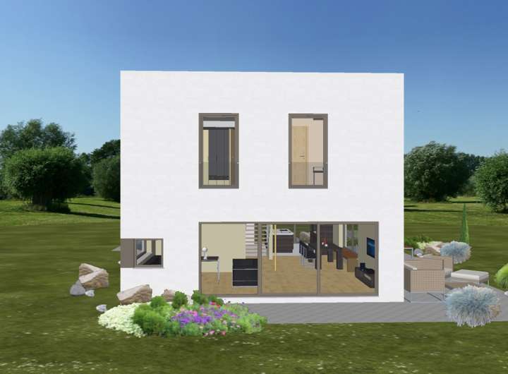 Grundfläche: 161,71 qm, Außenmaße: 7,84 m x 13,14 m, Flachdach. Im Preis enthalten ist das ca. 504 qm große Baugrundstück mit einem kalkulierten Preis von 600.000 Euro, das separat erworben wird (zuzügl. der Maklerkosten, Notar/Grunderwerbsteuer).