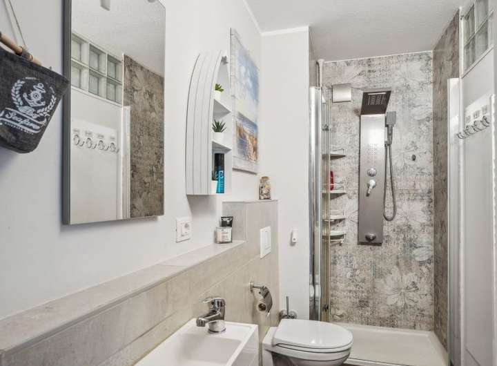 Bad klein aber fein: Das geschmackvoll gestaltete Badezimmer ist effizient geschnitten und bietet alles, was man braucht.
