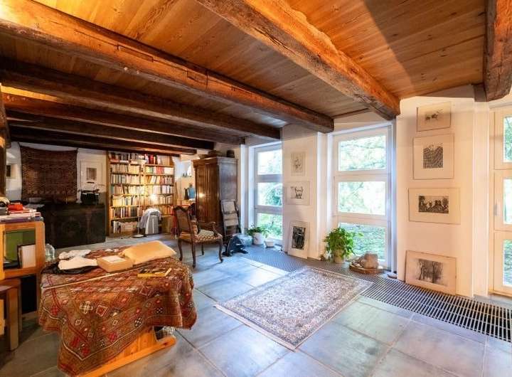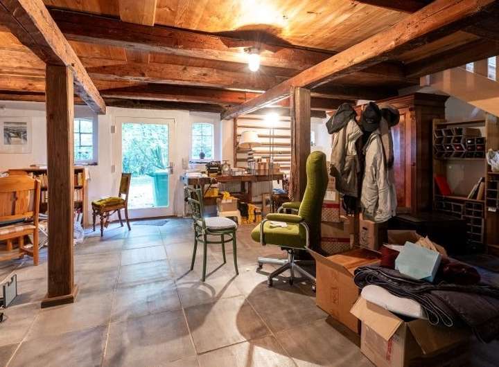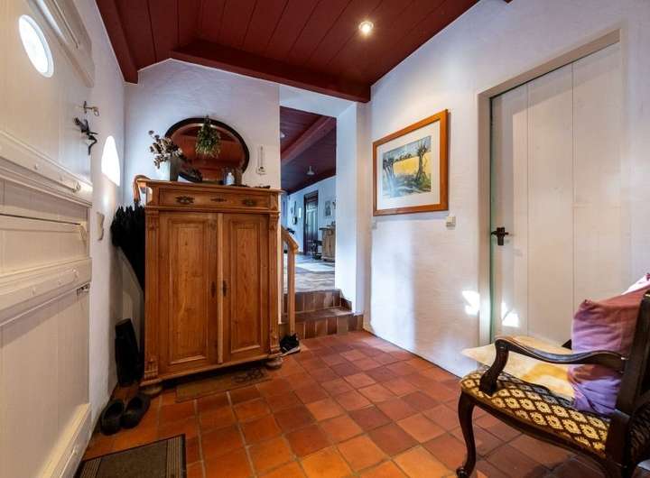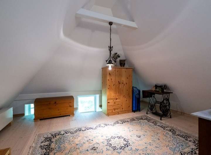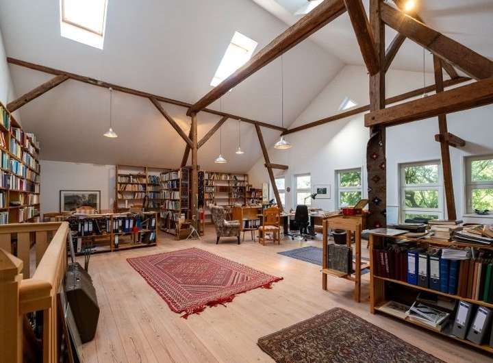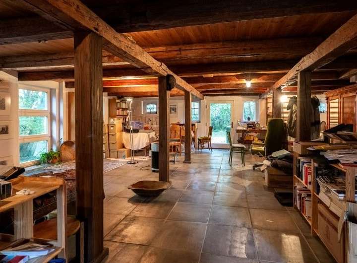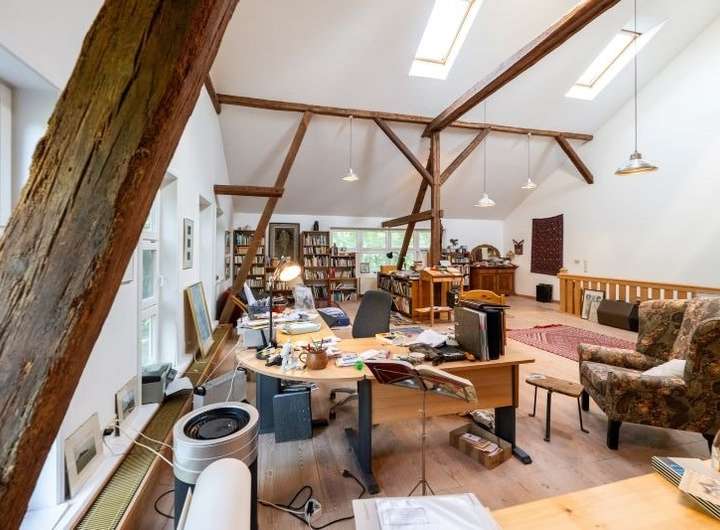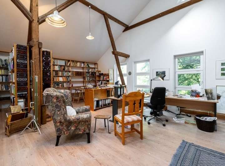 Die Stallscheune verfügt im Erdgeschoss über einen großzügigen Hobbybereich und im Obergeschoss über einen beeindruckenden Atelierausbau, welcher firstoffen gestaltet ist und mit sehr viel Liebe zum Detail glänzt.