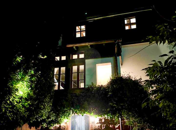 Dieses außergewöhnliche Einfamilienhaus aus dem Jahr 1910 verbindet historischen Charme mit modernem Wohnkomfort und präsentiert sich als ein wahres Schmuckstück für anspruchsvolles Wohnen auf Zeit. Auf einer leichten Anhöhe gelegen, empfängt Sie das Haus über einige Treppenstufen und offenbart schon beim ersten Blick seine besondere Ausstrahlung.