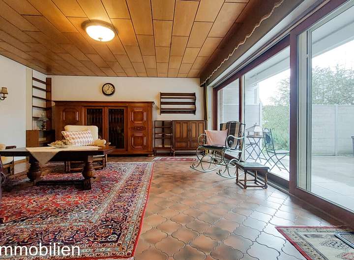 - großer Wohnbereich mit Zugang zur Terrasse und Garten
