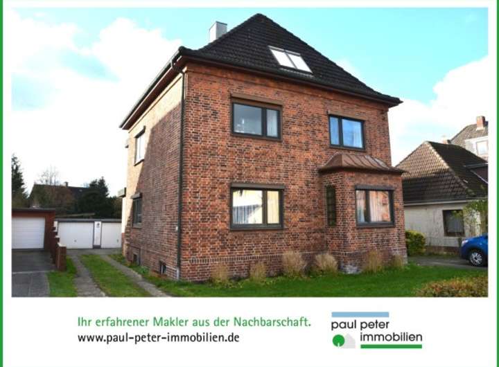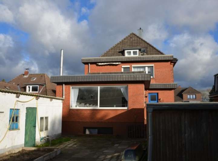 Dieses 3-Familienhaus (Typ "Kaffeemühle") mit Vollkeller und Doppelgarage wurde im Jahre 1936 auf einem 1.043m² großen Grundstück in ruhiger Sackgassenlage in Neumünsters beliebtem Stadtteil Gartenstadt erbaut. Im Jahre 1975 erfolgte ein Anbau, sodass die Gesamtwohnfläche heute 217m² beträgt. Die Nutzfläche im Kellergeschoss beläuft sich auf 96m².