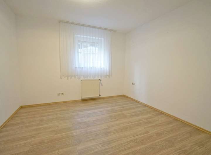 Das Schlafzimmer ist gemütlich und bietet Platz für ein größeres Bett und eine Schrankwand. Das Tageslichtbad ist hell gefliest und mit Wanne und Dusche ausgestattet. Ein Abstellraum sorgt für Ordnung im Alltag.