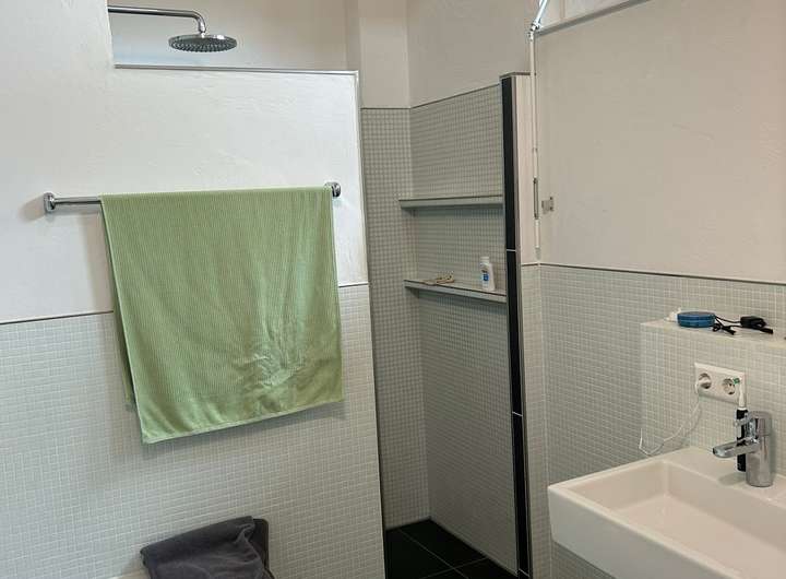 und eine angenehme, luftige Höhe verleiht. Das geräumige Badezimmer rundet diese Etage ab und überzeugt durch seine moderne Ausstattung.