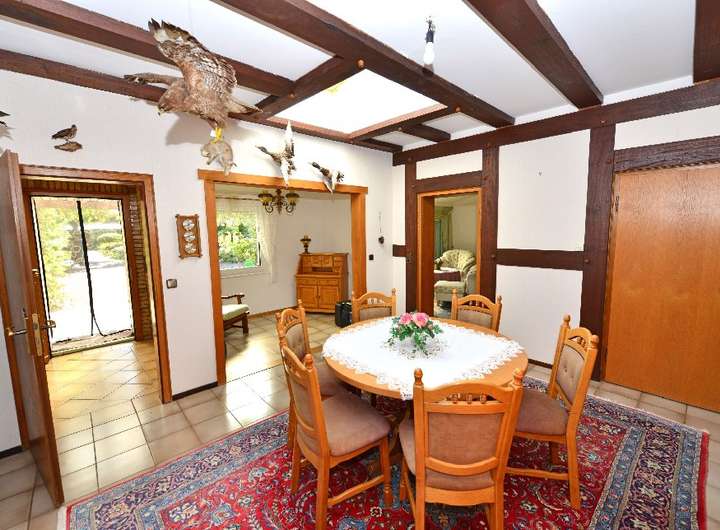 Dieses weitläufige Einfamilienhaus in Holzständerbauweise steht auf einem etwa 6.837 m² großen Areal am ruhigen Ortsrand von Hennef-Blankenberg. Es eignet sich hervorragend für Menschen, die gerne naturnah leben und viel Platz benötigen – sei es für eine kleine Tierhaltung, für gärtnerische Projekte oder für andere Hobbys mit Flächenbedarf. Das Haus aus dem Jahr ca. 1981 befindet sich in zweiter Reihe und ist einseitig mit dem vorderen Gebäude verbunden. Auf einer einzigen Wohnebene stehen rund 135 m² Wohnfläche zur Verfügung. Ergänzt wird das Ganze durch mehrere Nebengebäude, die sich ideal als Lagerflächen, Werkstatt oder für die Unterbringung von Tieren nutzen lassen. Die Immobilie präsentiert sich gepflegt und wurde in den vergangenen Jahren teilweise modernisiert.