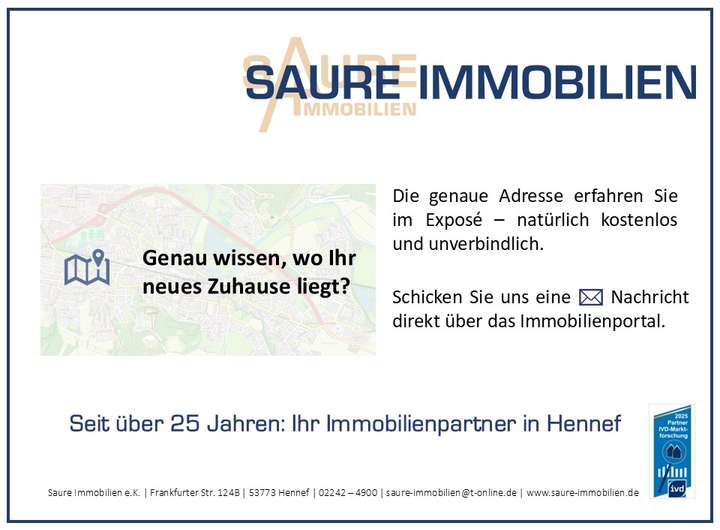 Das Haus liegt in einem ruhigen und naturnahen Wohnumfeld am Ortsrand von Hennef-Blankenberg. Die Umgebung ist von Feldern, Waldstücken und kleinen Höfen geprägt und bietet viel Ruhe und Erholung. Gleichzeitig ist die Hennefer Innenstadt mit Einkaufsmöglichkeiten, Schulen und die S-Bahn mit PR-Parkplatz in wenigen Fahrminuten gut erreichbar. Auch die Anbindung an das überregionale Straßennetz (A560 / A3) ist zügig gewährleistet – ideal für Berufspendler in Richtung Köln, Bonn oder Siegburg.
