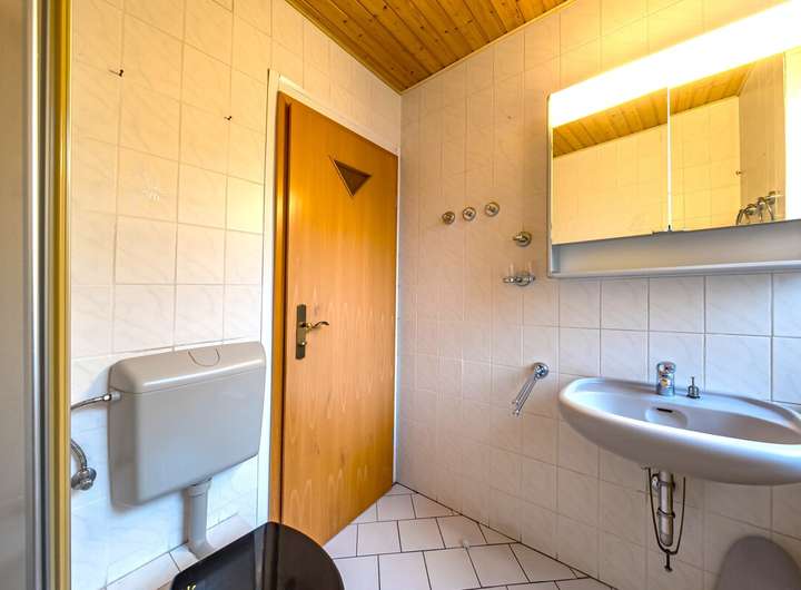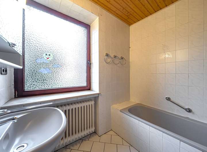 Sanitär: Wannenbad im Obergeschoss mit Stand-WC und Gäste-WC im Erdgeschoss (etwa 1992 saniert)