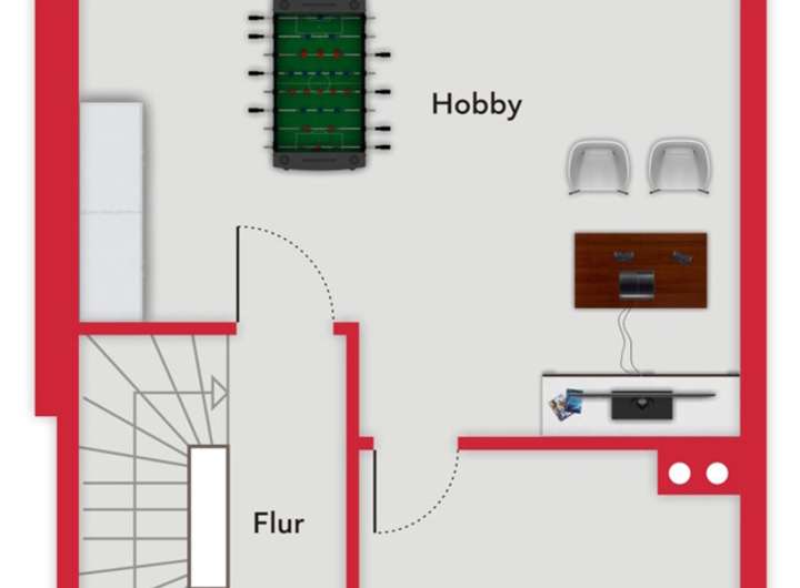 Das teilweise ausgebaute Dachgeschoss bietet mit einer Fläche von ca. 17 m² zusätzlichen Stauraum bzw. vielseitig nutzbare Abstellfläche.