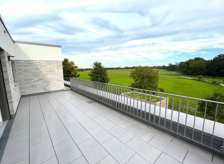 Die exklusive Penthouse-Wohnung überzeugt mit einem atemberaubenden Blick über die Weite der Felder Büderichs bis hin zum Düsseldorfer Fernsehturm.