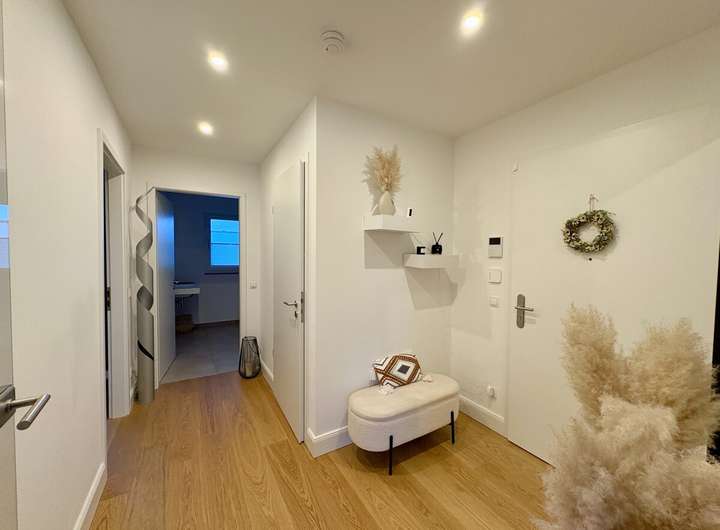 Alle Wohnbereiche sind mit hochwertigem Echtholzparkett und Klimaanlage ausgestattet. Des Weiteren wurden diverse Steckdosen und Multimediaanschlüsse verbaut.