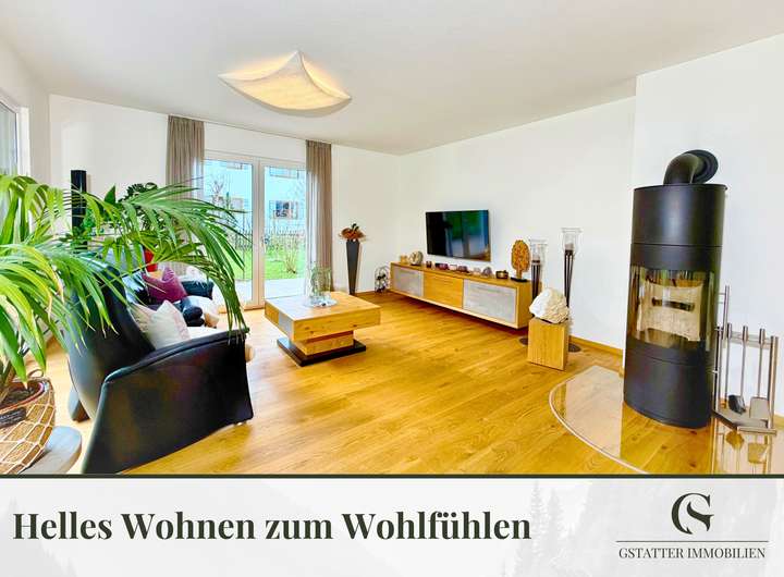 Das Haus wurde in nachhaltiger Holzbauweise mit Holzwolle-Dämmung, Radon-geschützter Bodenplatte und einer Luft-Wasser-Wärmepumpe errichtet und erfüllt damit die Standards eines modernen Passivhauses. Große Fensterflächen schaffen helle Räume und eine warme Wohnatmosphäre, während der offene Wohn- und Essbereich im Erdgeschoss direkten Zugang zur überdachten Terrasse und dem weitläufigen Garten ermöglicht.