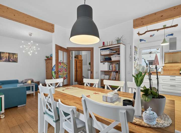 Das Haus wird in Absprache zur Eigennutzung freigestellt und befindet sich größtenteils in modernisiertem Zustand. Im Haupthaus wurden zahlreiche Sanierungen durchgeführt, die den Wohnkomfort spürbar verbessern. Dazu zählen die Dachsanierung inklusive Dämmung und Neueindeckung im Jahr 2012, der Austausch der doppelverglasten Fenster im Jahr 2016 sowie die Modernisierung des Badezimmers im Obergeschoss aus dem Jahr 1996 und des Badezimmers im Erdgeschoss im Jahr 2016. Ebenfalls im Jahr 2016 wurden die Gas-Zentralheizung, sämtliche Zu- und Abwasserleitungen, die Elektrik sowie der Fassadenanstrich erneuert. Der geschliffene und lackierte Dielenboden aus dem gleichen Jahr verleiht dem Haupthaus seinen besonderen Charme. Die vorhandene Terrasse sollte erneuert werden. Ein direkter Stellplatz oder Garten ist nicht vorhanden; stattdessen bietet ein kleiner Hof zusätzlichen Außenbereich.