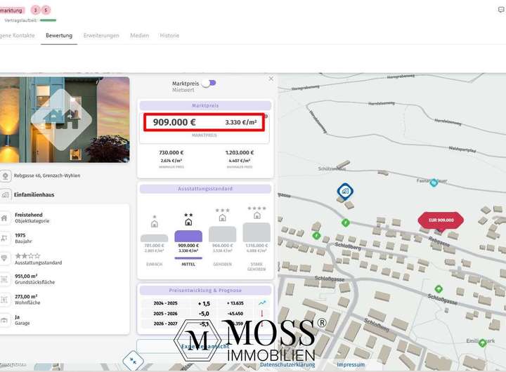 Preistrend für Bestandsimmobilien in Grenzach-Wyhlen