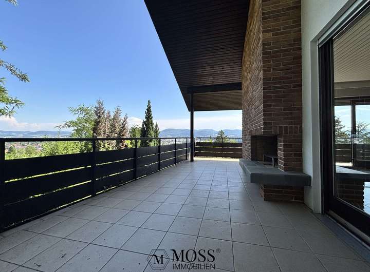 Hinzu kommen 156 m2 Terrassen, Balkone (mit Aussenkamin) und Aussenflächen, sowie ein grosszügiger, sehr schön bewachsener Garten. Hinter dem Haus haben sie noch 5 Meter bis zur Grundstücksgrenze und einen schützenden Wald, der ein perfektes Abenteuerland für Kinder bereitstellt. Die Kinder finden hier schnell einen Trampelpfad durch den Wald zur oberhalb liegenden Fasnachtsfeuerwiese.
