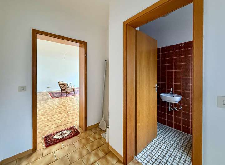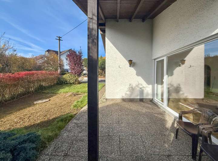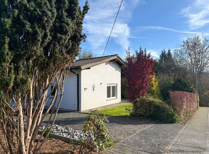 Dieser Bungalow aus ca. 1980 befindet sich in einer beliebten, ruhigen Wohnlage von Bad Marienberg. Mit rund 118 m² Wohnfläche eignet er sich ideal für Paare, Senioren oder kleine Familien. Der helle Wohn- /Essbereich mit großer Fensterfront öffnet sich zur überdachten Süd-West-Terrasse und in den pflegeleichten Garten – perfekt für alle, die wenig Aufwand wünschen und dennoch Wert auf eine grüne Außenfläche legen. Neben einem geräumigen Schlafzimmer stehen zwei weitere Zimmer zur Verfügung, nutzbar als Kinder-, Gästezimmer oder Büro. Zwei Tageslichtbäder sorgen für Komfort. Direkt an die Küche schließt sich ein HWR mit Gastherme an, der sich gut für Vorräte oder Haushaltsgeräte eignet. Die Garage ist über einen Nebenflur mit dem Haus verbunden – ideal, um Einkäufe bequem ins Innere zu bringen. Dieser Flur bietet zudem Platz für Schuhe oder Alltagsgegenstände und verfügt über einen Waschmaschinenanschluss. Zusätzlich zur Hauptterrasse steht eine weitere, südöstlich ausgerichtete Terrasse bereit, ergänzt durch einen kleinen gepflasterten Sitzplatz. Der Dachboden, der sich über die gesamte Hausfläche erstreckt, bietet reichlich Stauraum. Die Lage verbindet Ruhe mit Zentrumsnähe: Einkaufsmöglichkeiten, Cafés uvm. sind in wenigen Gehminuten oder mit dem Ato erreichbar!